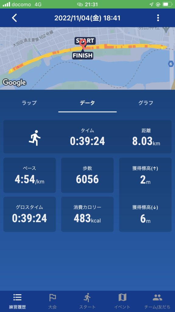 11月4日(金) 距離:8キロ 時間:39分24秒