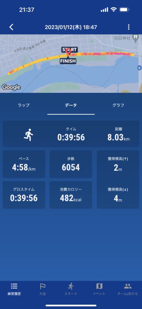 以下の画像は、帰宅後のランです。