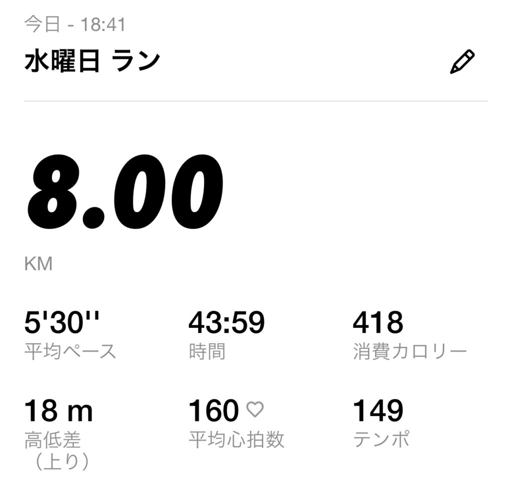 昨日のランニングは、休日は基本的に朝に行いますが、月初で仕事だったので帰宅後に練習を行い、ランニング前のウォーミングアップとしてのジョッグでランニングコースまで移動の時とランニング中に頭が痛かったですが、何とか8キロ走り切れました。