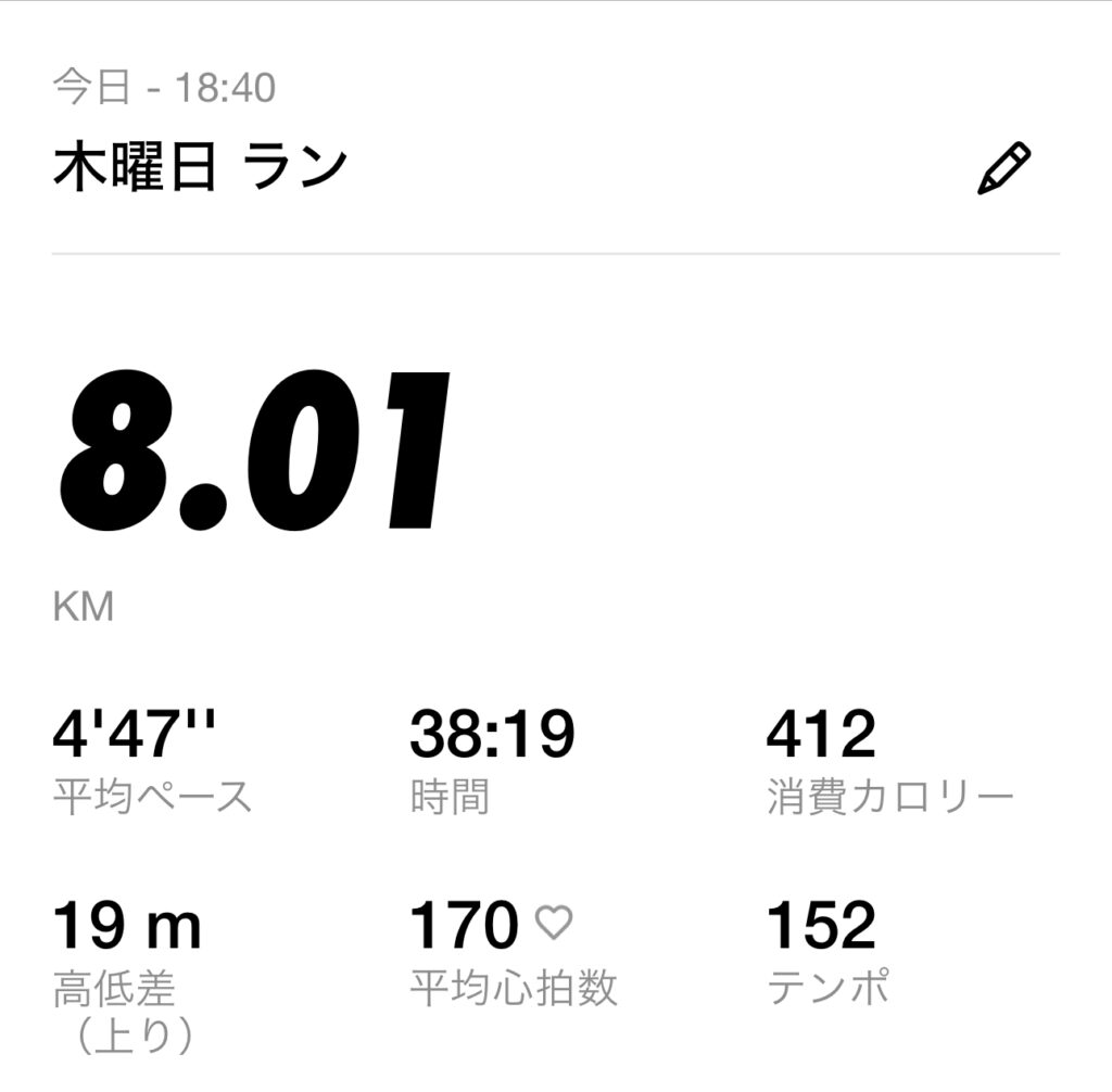 以下の画像は、帰宅後のランニング記録です。