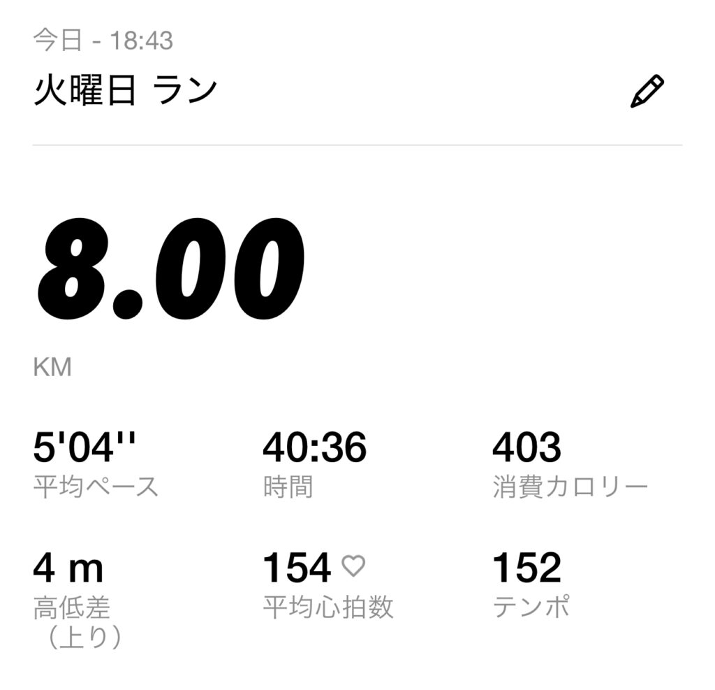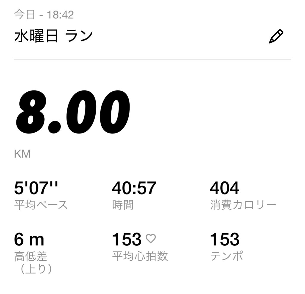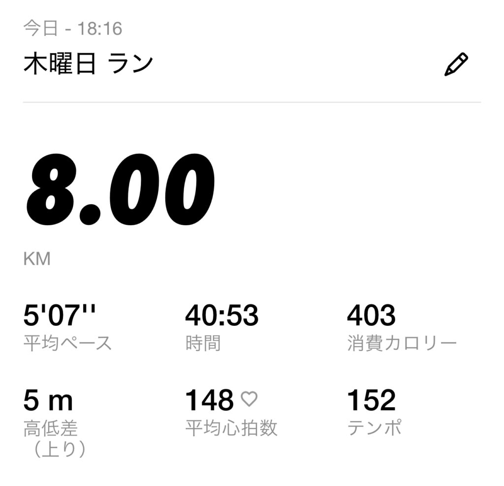 9月1日 (月) ・スタート時間:18:40・距離: 8キロ ・時間:40分47秒
