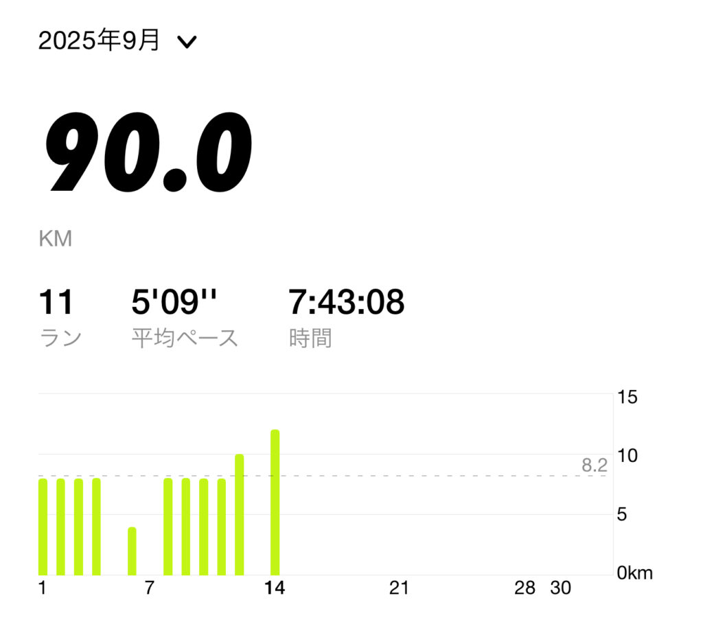 ・9月前半の月間走行距離:90キロ