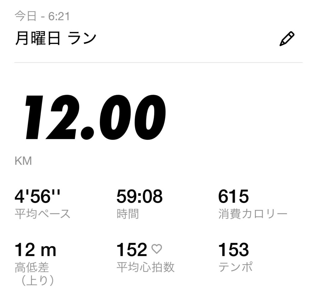 10月27日 (月) [終日休・出発前のランニング]・スタート時間: 6:21・距離:12キロ ・時間:59分8秒